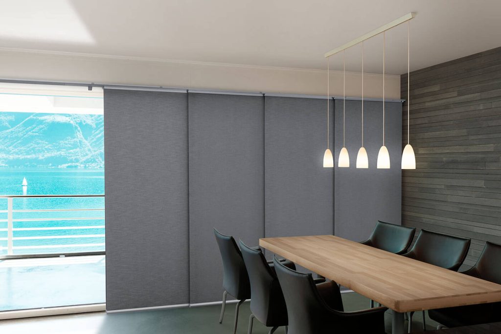 Our made to measure Panel Glide blinds are just the thing if you want to cover a big window or a sliding door. Big panel blind slats overlap elegantly but don’t get us wrong; the panel blinds are also great in smaller spaces too. If you’re looking for a smart, modern and contemporary alternative to venetian blinds, then you needn’t look any further than this beautiful collection of sliding panel blinds, all made to measure. The vertical panel for sliding doors and big windows are versatile and easy to use.